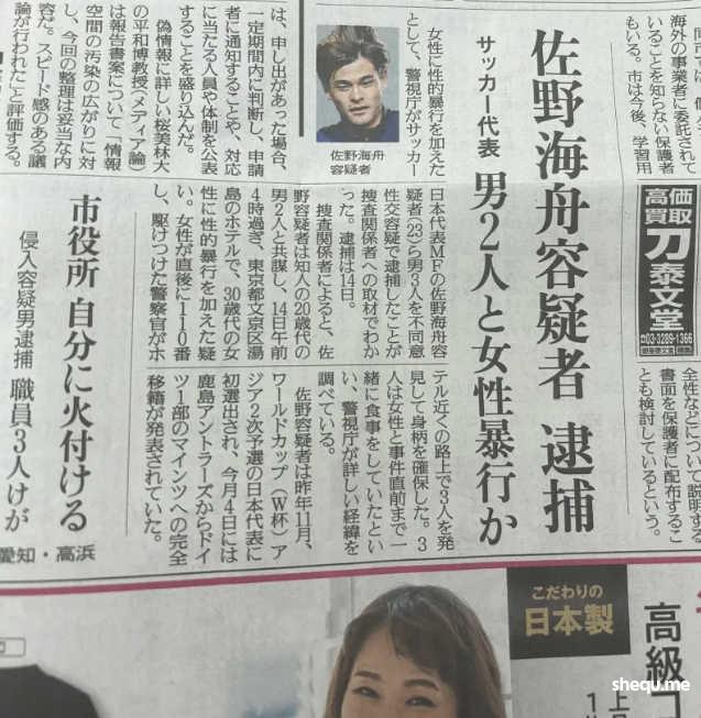 多家日本媒体报道,23岁的日本国脚佐野海舟等三名男子涉嫌在东京文京区一家酒店对一名30多岁的女性轮流性侵而被警视厅逮捕,这一惊天消息也震惊了日本足球圈。
